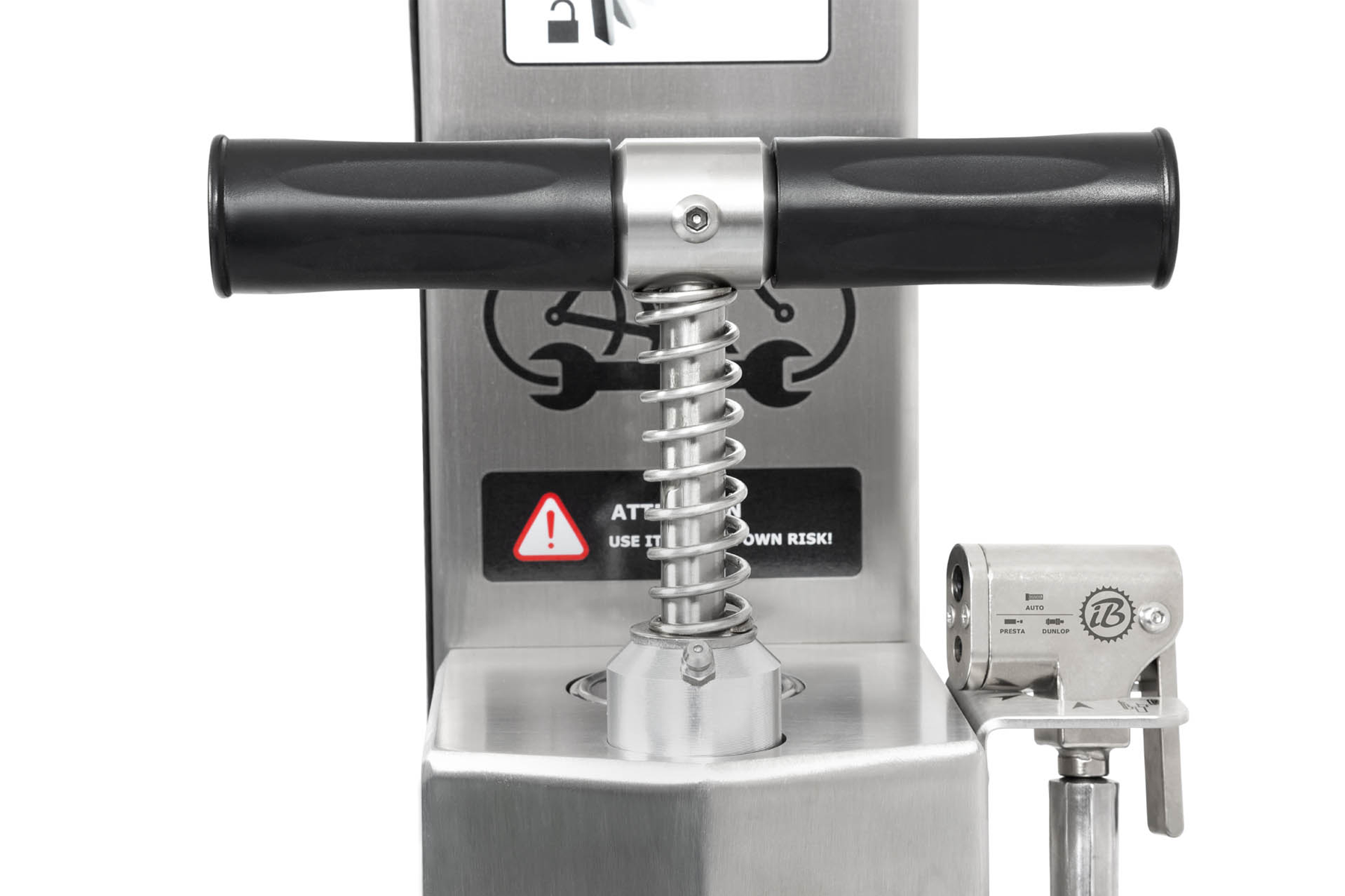adaptador de bomba de doble cámara - acero inoxidable AISI630 + niquelado - para todo tipo de válvulas de bicicleta (Presta, Schrader y Dunlop) con componentes AISI304 de grado industrial (IBOMBO AISIPRO 630 HEAD™)